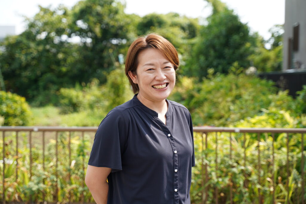 生活支援員の岡村です。皆様が快適に、楽しく訓練に取り組めるよう、日常生活のサポートをさせていただきます。