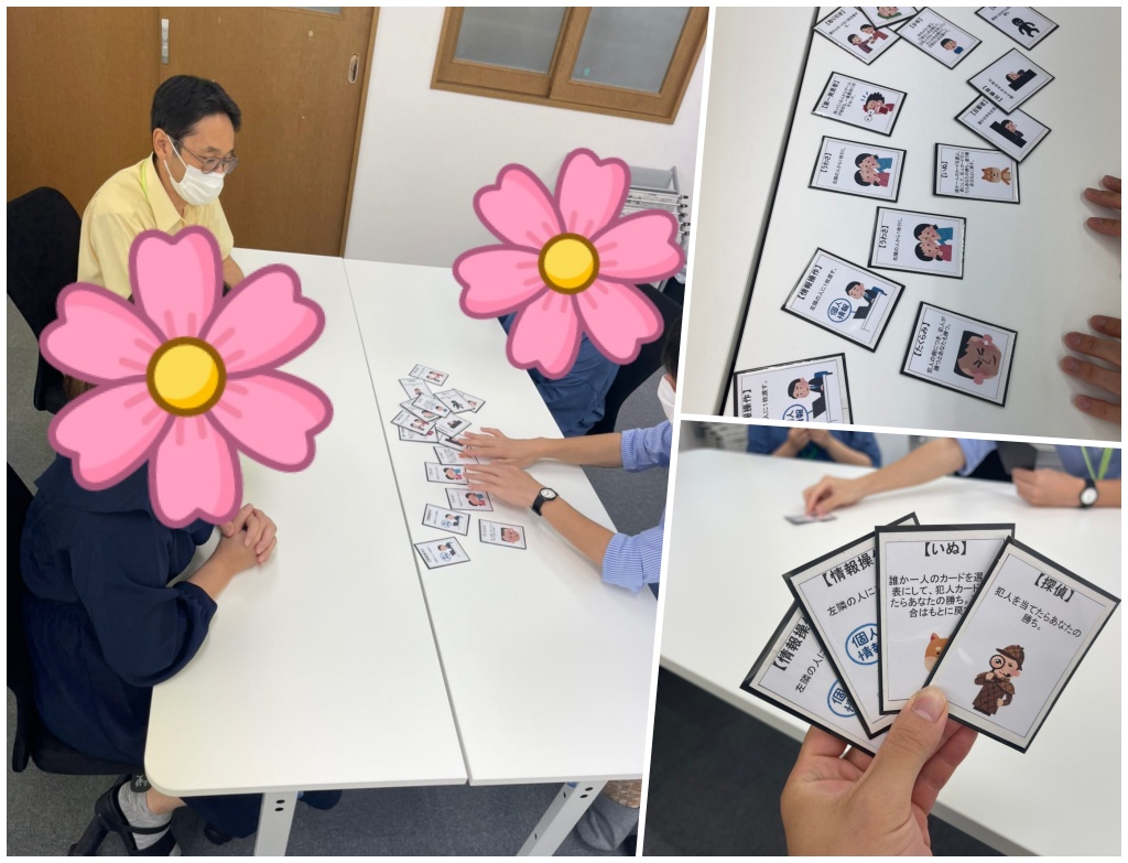 内容はとてもシンプルですが、カードの効果を使い犯人を見つけていく中で、コミュニケーションが自然に生まれます。講座で行っている考えや気持ちの伝え方、聞き方など実践できる場となっています。